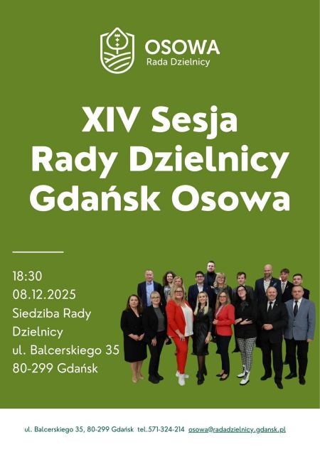 Radne i radni dzielnicy Osowa zapraszają do udziału w obradach XIV sesji, która odbędzie się 8 grudnia o godz. 18:30 w siedzibie przy ul. Balcerskiego 35 (I piętro).