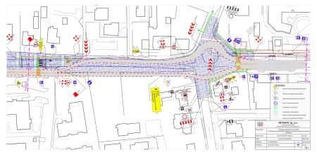 W dniu 13.11.2024 r. ok. godziny 8:00 zostanie wprowadzona zmiana tymczasowej organizacji ruchu (Etap 22a Rys. 23.1), polegająca na przekierowaniu ruchu na ul. Kielnieńskiej w kierunku Oliwy po jezdni tymczasowej, natomiast w kierunku Chwaszczyna częściowo po jezdni docelowej. Objazd do ul. Barniewickiej będzie prowadzony przez ul. Balcerskiego i ul. Niedziałkowskiego.